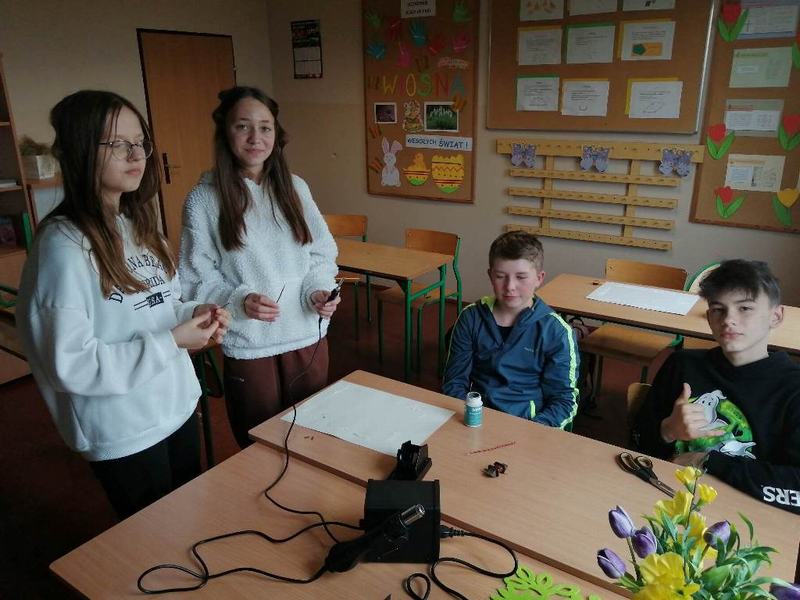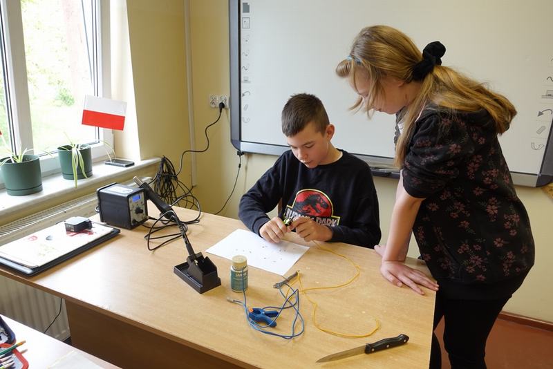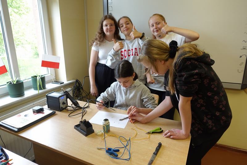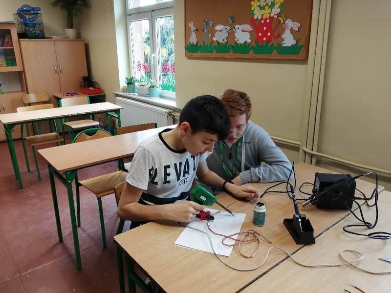 Uczniowie klas VI–VIII, w roku szkolnym 2022/2023, mogli zapoznać się ze stacją lutowniczą i jej technicznymi możliwościami. Zajęciem poprzedzającymi pracę z gorącymi elementami urządzenia było krótkie szkolenie z zakresu BHP oraz zapoznanie z zasadami działania urządzenia. Świat stopionego, ciekłego metalu (cyny) okazał się ekscytujący. Praca dotyczyła: