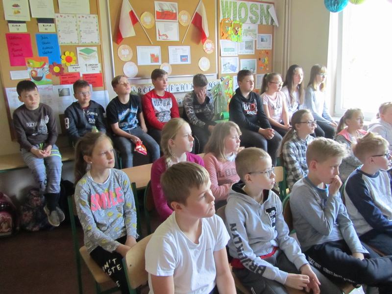 W ramach realizacji projektu edukacyjnego "Czyste lasy, łąki, pola - ziemia nasza o to woła" w dniach od 06.05 do 10.05 2019 roku w naszej szkole zostały podjęte różne działania pod hasłem "Tydzień dla Ziemi". Pierwszego dnia, w poniedziałek uczniowie obejrzeli prezentację multimedialną "Rzeka też chce być czysta". Była to pouczająca lekcja na temat zanieczyszczeń wód oraz ich skutków dla żyjących w nich ryb, roślin i innych organizmów.