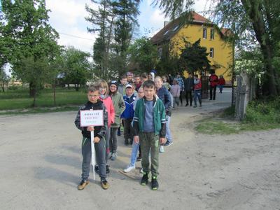 We wtorek odbyła się wycieczka nad Prosnę w celu obserwacji rzeki jako środowiska życia i elementu krajobrazu. Dzieci miały możliwość wykazania się wiedzą zdobytą poprzedniego dnia podczas oglądania prezentacji multimedialnej i wykorzystania jej w terenie. Aby zmobilizować wszystkich do dbania o czystość okolic rzeki Prosny, uczniowie umieścili tabliczkę z informacją "Rzeka też chce być czysta".