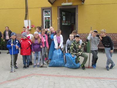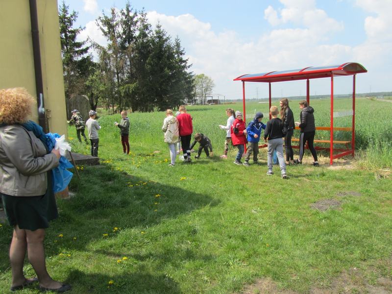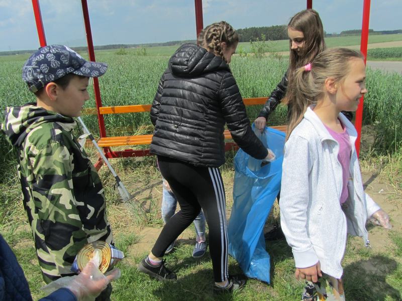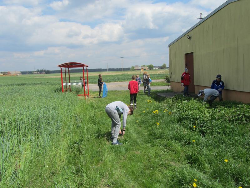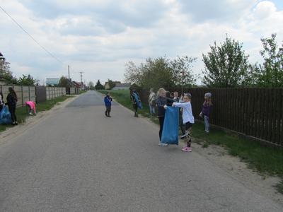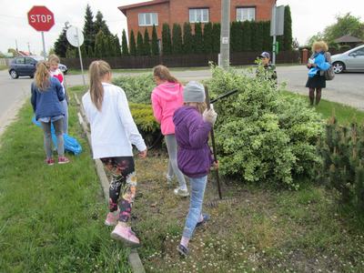 Kolejny dzień przebiegł pod hasłem "Moja miejscowość lśni czystością". Uczniowie wyposażeni w rękawice i narzędzia do sprzątania uporządkowali nie tylko obszar szkoły i jej obejście, ale również sprzątali teren wokół sklepu i Sali OSP w Zamościu.