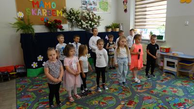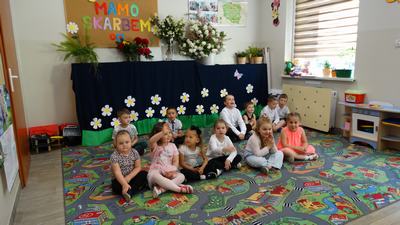 Słowa te były myślą przewodnią uroczystości odbytej 30 maja, kiedy to przedszkolaki zaprosiły swoje mamy, aby wspólnie świętować Dzień Matki. Dzieci przedstawiły krótki program artystyczny, zaprosiły swoje mamy do wspólnej zabawy, każda mama otrzymała również , certyfikat,,Najwspanialszej Mamy na świecie". Następnie wszyscy wspólnie usiedli do słodkiego poczęstunku. Po słodkościach czekała na dzieci niespodzianka: dmuchane zamki i ognisko z pieczonymi kiełbaskami. Atrakcje te ufundowała Rada Rodziców. Był to dzień pełen wrażeń zarówno dla mam jak i dzieci.