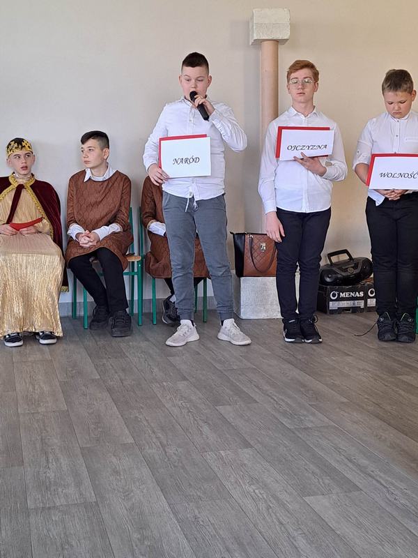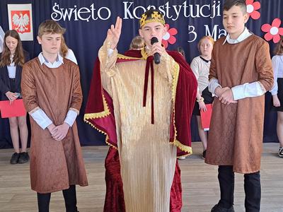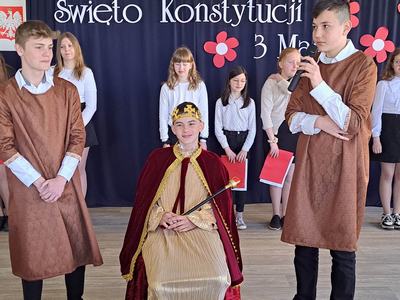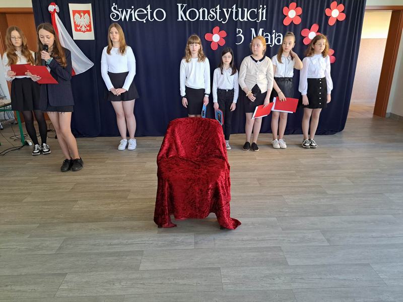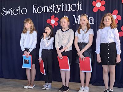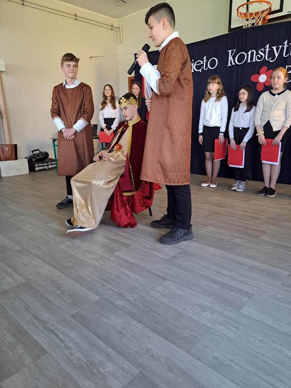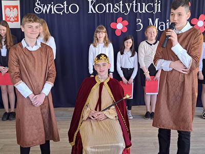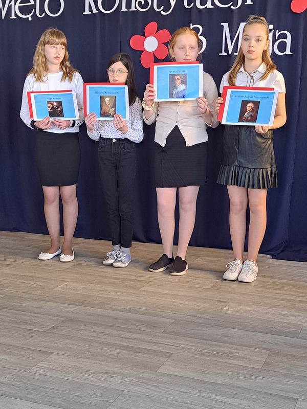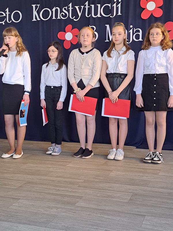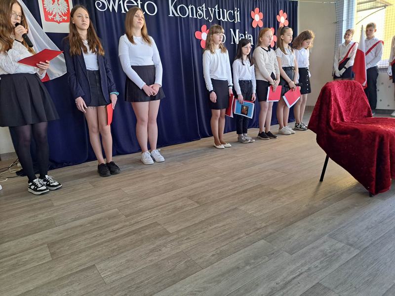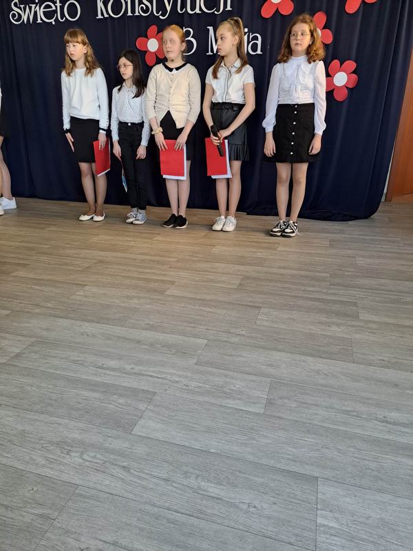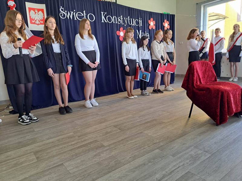 (2023-04-28) W bieżącym roku minęła 232 Rocznica Uchwalenia Konstytucji 3-go maja. By uczcić pamięć, w naszej szkole 28 kwietnia 2023 r. odbył się uroczysty apel. Uczniowie klas IV-VIII przygotowali krótką część artystyczną.