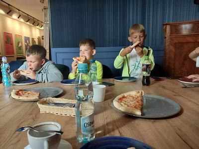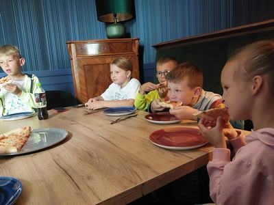 Następnie uczniowie udali się do muzeum 3D w ostrowskim ratuszu, aby odbyć podróż w czasie „Ulicami dawnego Ostrowa”. Po tych atrakcjach bardzo oczekiwanym punktem programu była pizza, lody oraz plac zabaw.