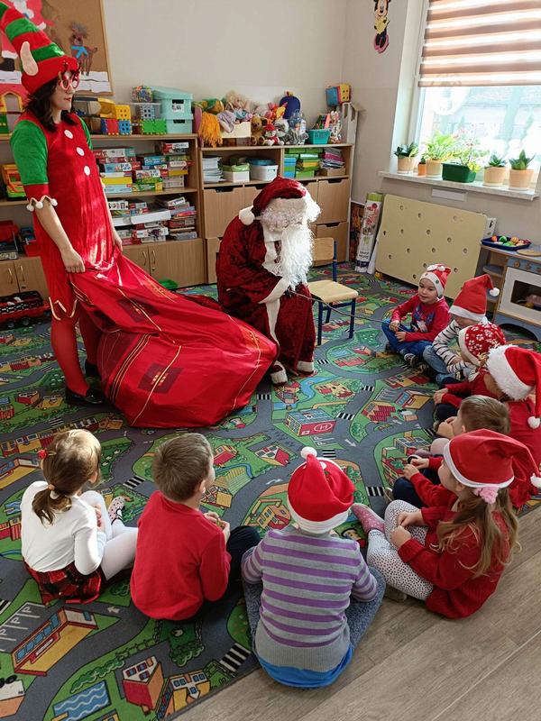 (2022-12-07) Wizyta świętego Mikołaja w naszym przedszkolu, to jeden z najbardziej oczekiwanych przez dzieci dni w roku. Przybył on do dzieci w tym roku 7 grudnia, już od rana wszyscy nasłuchiwali dźwięku dzwoneczków, które było słychać z daleka. I już wiadomo było, że do przedszkola zbliża się nikt inny, jak święty Mikołaj w towarzystwie Elfów. Dzieci z ogromną radością przywitały Gości śpiewając im piosenkę, oraz tańcząc dla nich, Na zakończenie święty Mikołaj wręczył wszystkim dzieciom prezenty. Dziękujemy Mikołaju.