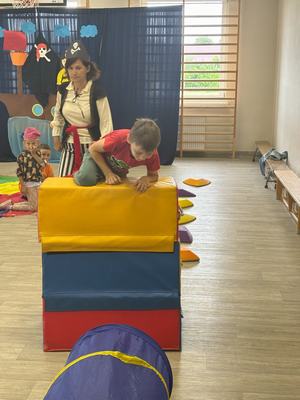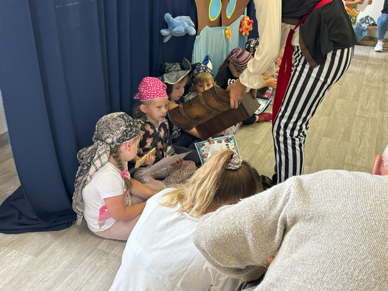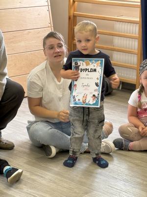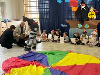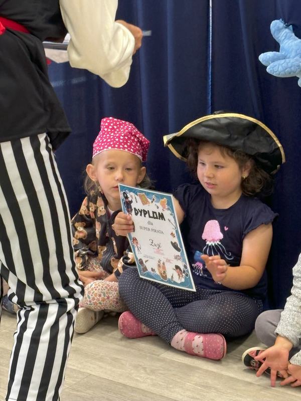 Wszyscy bardzo dobrze się bawili i na koniec otrzymali pamiątkowy dyplom ,,Super Pirata". Po wspólnej zabawie dzieci z rodzicami przeszli do sali przedszkolnej gdzie czekały na nich zabawki, kolorowanki, puzzle.