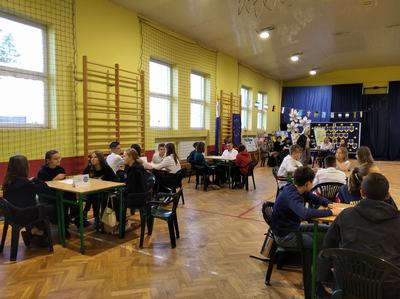 (2022-10-28) 28 października w Szkole Podstawowej im. Andrzeja Mielęckiego w Koźminku odbył się finał VII Turnieju Klubów Europejskich. Uczniowie w I etapie przygotowywali prace plastyczne dotyczące jednego wybranego państwa należącego do Unii Europejskiej. W drugim etapie należało zaprezentować wybrane państwo. III etap to test wiedzy o Unii Europejskiej. W rozgrywkach finałowych wzięło udział osiem drużyn. Naszą szkołę reprezentowały uczennice klasy VIII i VI: Agata Przybyłek, Zofia Warga, Anna Maciejewska i Wiktoria Jaszczyńska. Mimo, że nie udało się nam stanąć na podium, to dziewczyny spisały się na medal. Otrzymały wartościowe nagrody, dyplomy i na pewno uwierzyły w siebie. Warto dodać, że patronat honorowy nad wydarzeniem objął poseł do Parlamentu Europejskiego pan Leszek Miller.