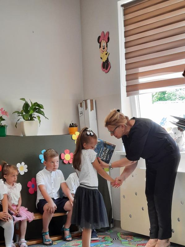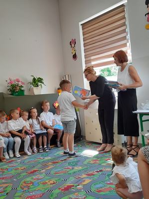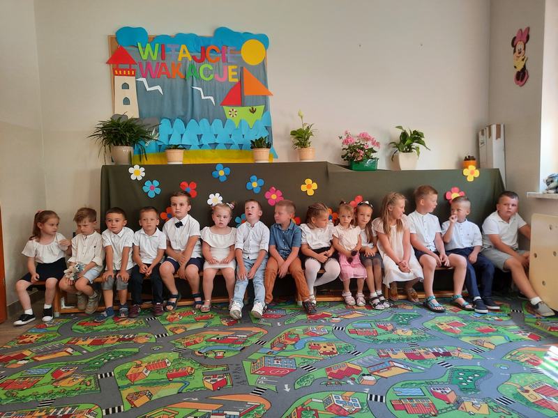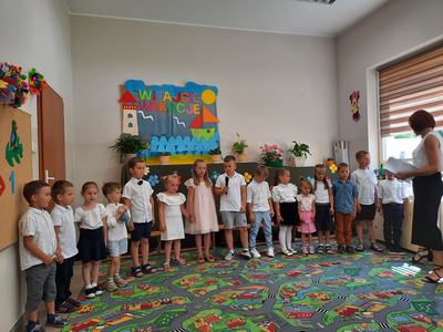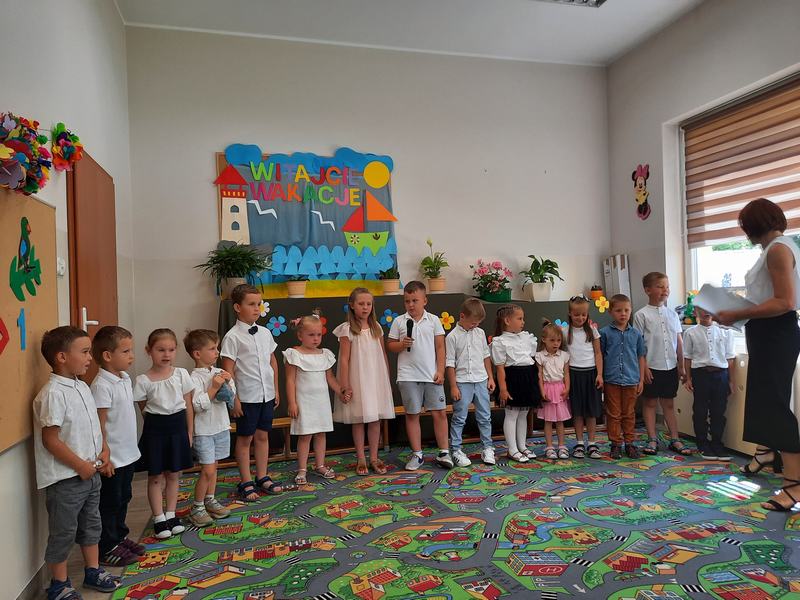 (2022-06-23) 23 czerwca odbyła się uroczystość zakończenia roku przedszkolnego 2021/2022, oraz pożegnanie najstarszych przedszkolaków , którzy od września rozpoczną naukę w klasie I. Dzieci zaprezentowały swoje umiejętności wokalne, recytatorskie oraz taneczne. Swoimi piosenkami i wierszami wprowadzili wszystkich w wakacyjny nastrój. Natomiast "starszaki" opowiedziały o niełatwej przedszkolnej codzienności oraz o niepokojach związanych z rozpoczęciem nauki w szkole podstawowej. Podziękowali również za trud włożony w ich edukację. Wszystkie dzieci otrzymały pamiątkowe dyplomy i książki ufundowane przez Radę Rodziców.