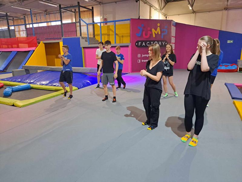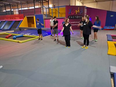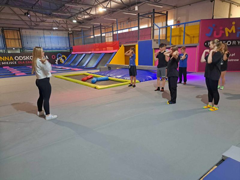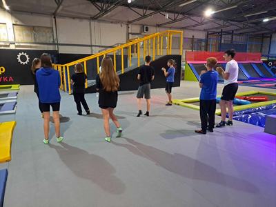Dnia 11 czerwca 2024 r. uczniowie klas VII i VIII wybrali się do JumpFactory – Parku Trampolin w Ostrowie Wielkopolskim. Celem wycieczki było propagowanie różnych form rekreacji i wypoczynku, rozwijanie zainteresowania sportem, rozwijanie ogólnej sprawności fizycznej oraz integracja zespołu klasowego. Po profesjonalnej rozgrzewce pod okiem instruktorki uczniowie korzystali z atrakcji takich jak trampoliny akrobatyczne i sportowe oraz baseny wypełnione gąbkami. Pobyt w JumpFactory okazał się niezwykłą lekcją wychowania fizycznego. Skacząc na trampolinach, uczniowie rozwijali ogólną sprawność fizyczną, koordynację oraz kształtowali właściwą postawę ciała. Wspólne skakanie wprawiło wszystkich w znakomity nastrój i wyzwoliło mnóstwo pozytywnej energii.