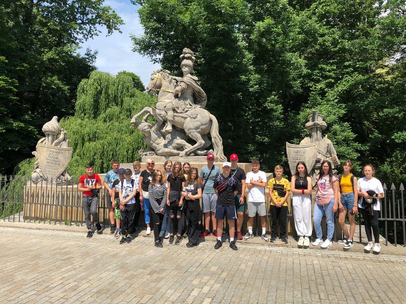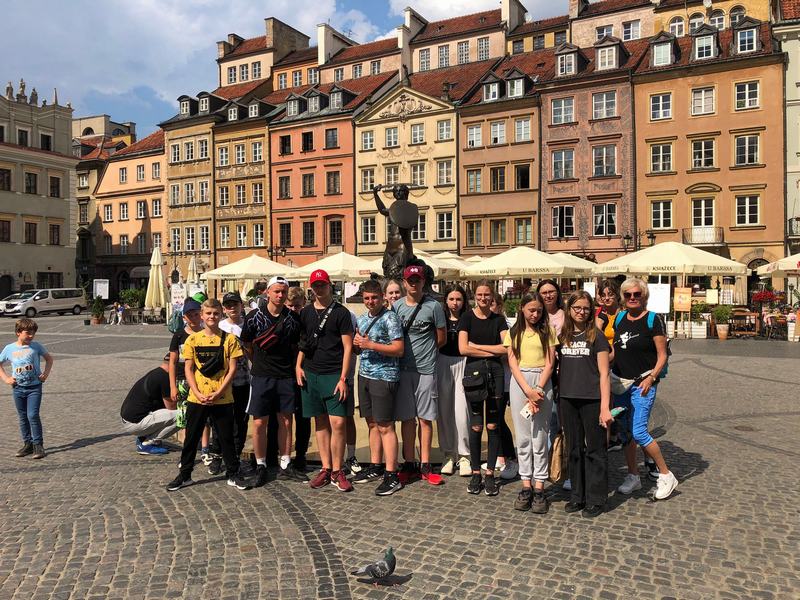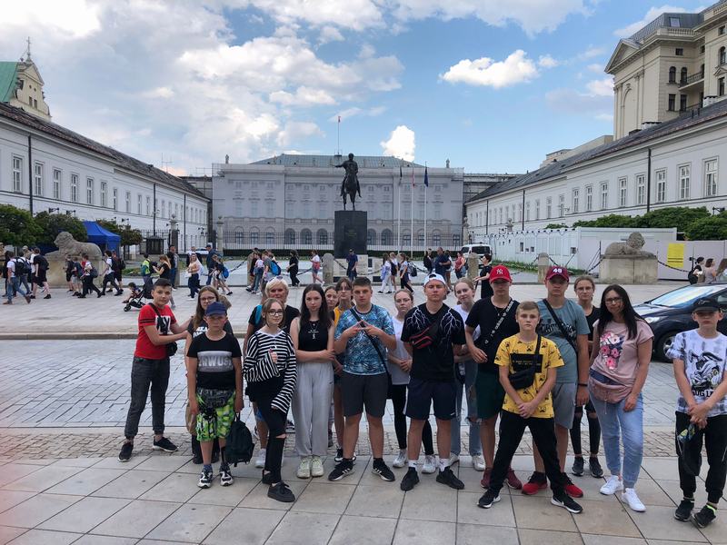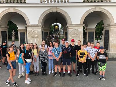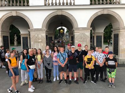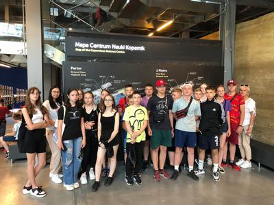 (2022-06-10) W dniach 9 - 10 czerwca 2022 roku uczniowie kl. V - VIII udali się na dwudniową wycieczkę do Warszawy dofinansowaną w ramach przedsięwzięcia Ministra Edukacji „Poznaj Polskę”. Program wycieczki obejmował zwiedzanie: zespołu zabytkowych cmentarzy wyznaniowych na Powązkach, Muzeum Łazienki Królewskie, Zamek Królewski - Rezydencja Królów Rzeczpospolitej oraz pobyt w Centrum Nauki Kopernik.