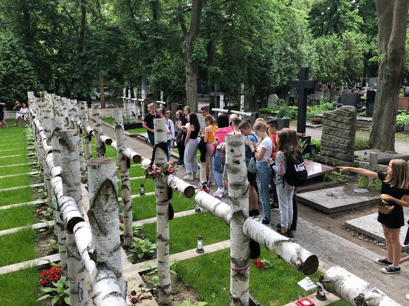 Zwiedzając cmentarz na Powązkach uczniowie przeżyli prawdziwą lekcję historii stojąc nad grobami Powstańców Warszawskich. W malowniczych ogrodach Łazienek Królewskich mogli zobaczyć przepiękny Pałac na Wodzie.