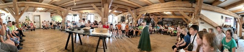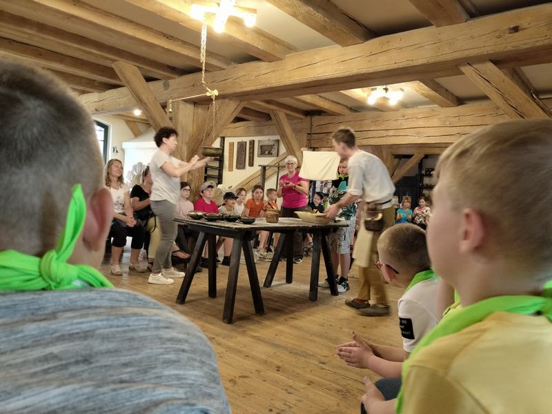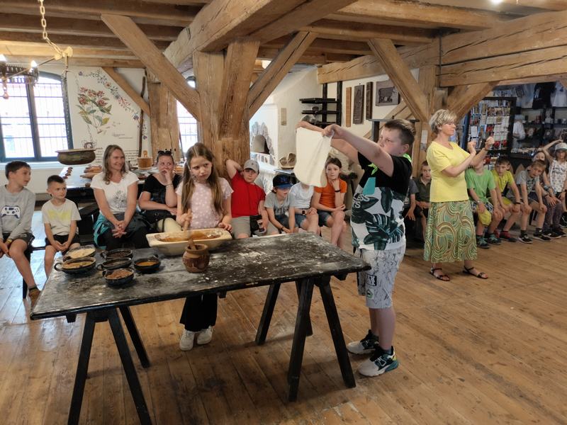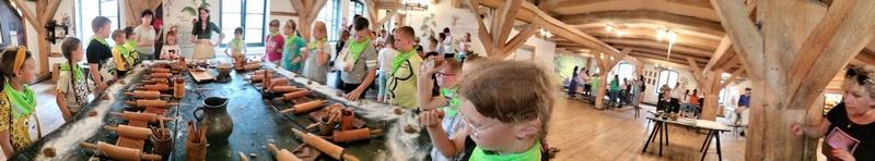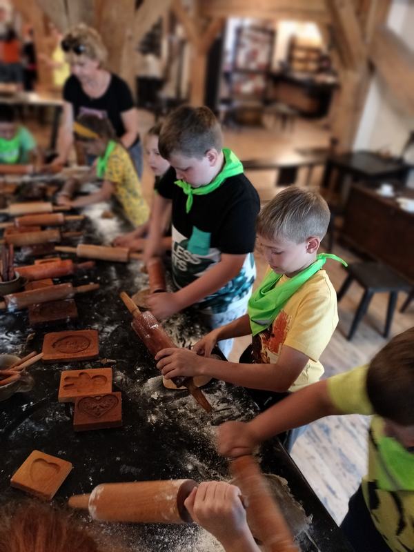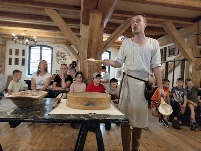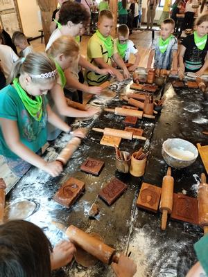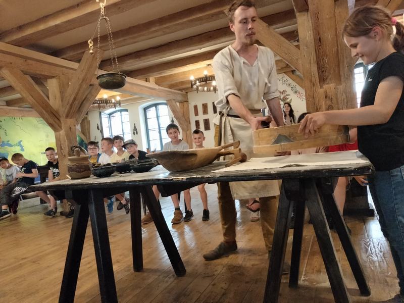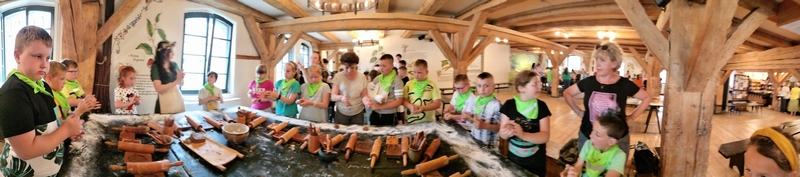 Zobaczyli również Ratusz Staromiejski, Dwór Artusa, Kamienice pod Gwiazdą, Dom Mikołaja Kopernika oraz pomnik Mikołaja Kopernika. Następnie aktywnie uczestniczyli w procesie powstawania pierników: wyrabiali ciasto, dodawali składniki, wkładali je do form, ozdabiali. Zajęcia urozmaicał fakt, iż prowadzący porozumiewali się z uczestnikami gwarą charakterystyczną dla ziemi chełmińskiej.