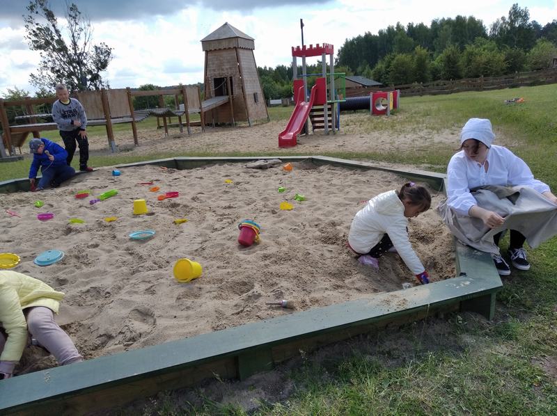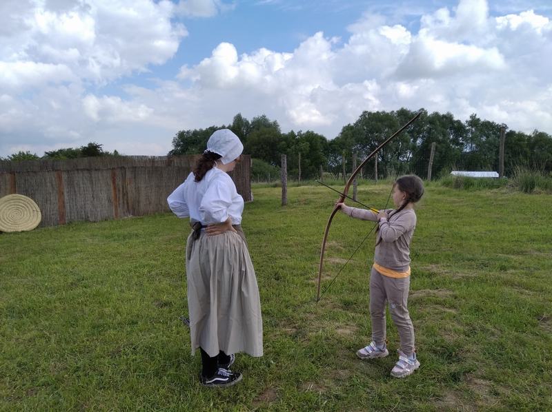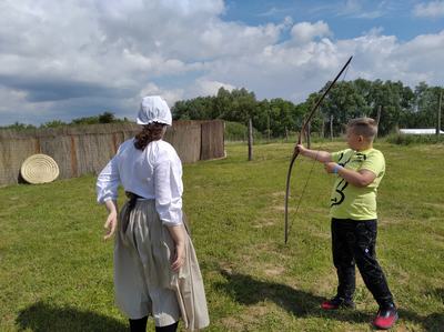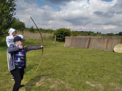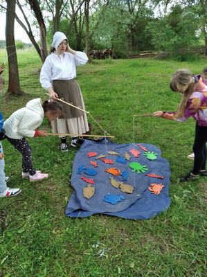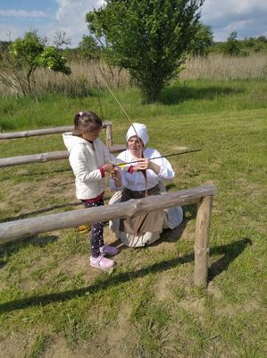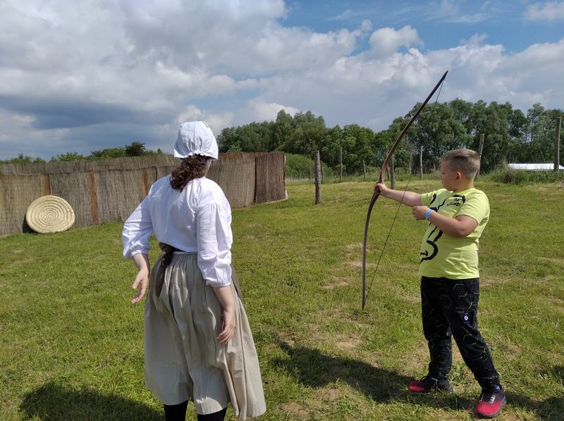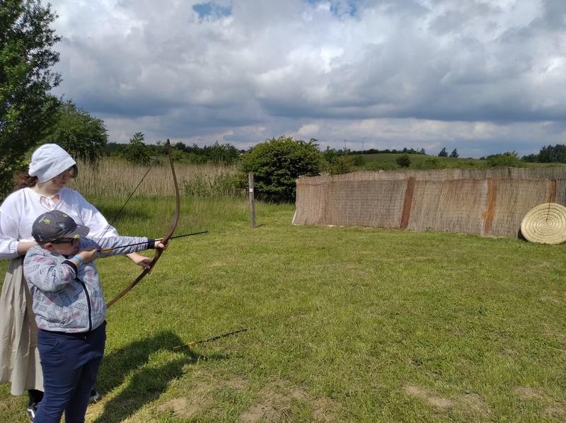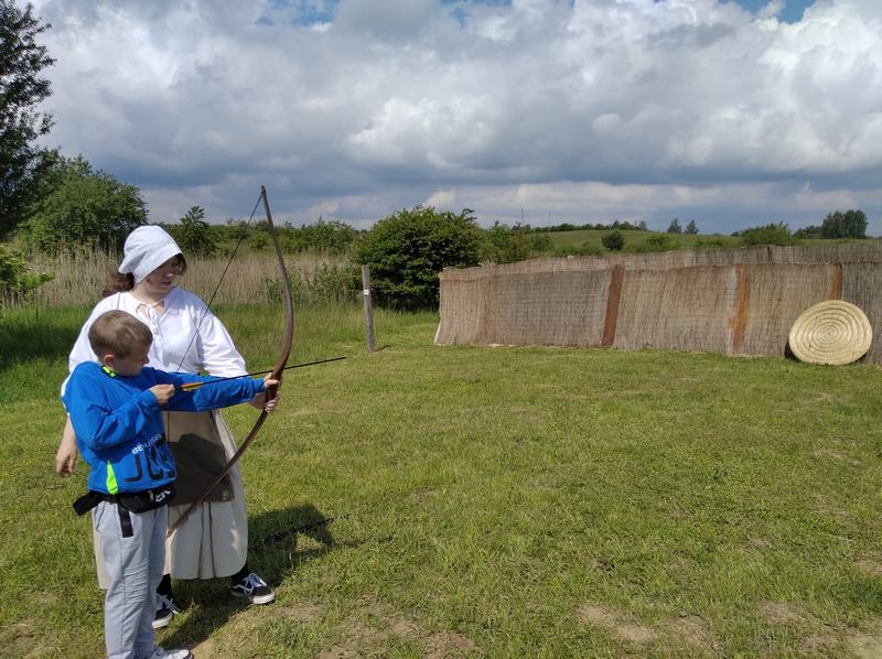 Następnie dzieci udały się na zajęcia strzelania z łuku, a potem w archeologicznej piaskownicy odkrywali ukryte przedmioty z minionych epok. Aby przekonać się, jak spędzali czas nasi przodkowie, uczniowie uczestniczyli w starodawnych grach i zabawach, które prowadziła jedna z pań.