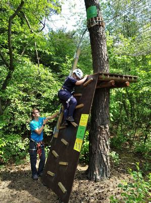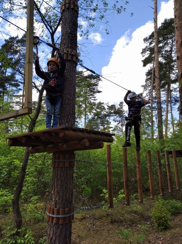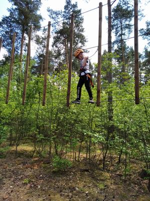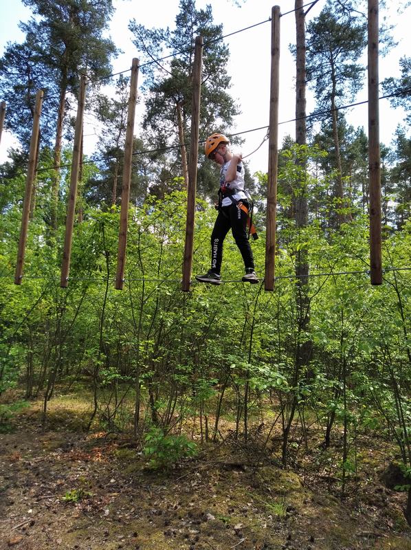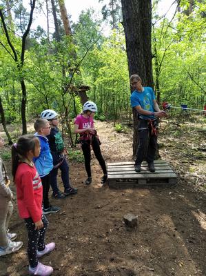 Starsza grupa dzieci wyruszyła w trasę po parku rozwiązując zagadki, które miały wskazać drogę i doprowadzić je do ukrytego skarbu. Jednak najwięcej emocji wzbudził u dzieci park linowy, który dla niektórych okazał się drogą nie do pokonania. Podsumowaniem wycieczki było ognisko, na którym piekliśmy smaczne kiełbaski. Trochę zmęczeni, ale pełni wrażeń wróciliśmy do domu.