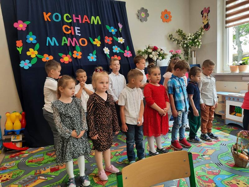 (2022-05-26) 26 maja w naszym przedszkolu odbyła się piękna uroczystość z okazji wyjątkowego święta jakim jest "Dzień Matki". Dzieci z dużym zaangażowaniem przystąpiły do prezentowania swoich talentów recytatorskich i wokalnych. Mamy ze wzruszeniem wysłuchały wierszy i piosenek, które wyrażały miłość i wdzięczność za za matczyną dobroć, cierpliwość, za serce, które tak wiele rozumie i tak wspaniałomyślnie wybacza. Po zakończeniu programu artystycznego dzieci obdarowały swoje mamy kwiatami. Następnie wszyscy zasiedli do słodkiego poczęstunku.