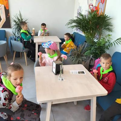 Dzieci z oddziału przedszkolnego lubią jeździć na wycieczki. 23 maja pojechały do Ostrowa Wielkopolskiego. Czekały tam na nich zajęcia w "Mediatece". Bawiły się tam na wirtualnych matach: zbierały grzyby w lesie, poszukiwały skarbów, grały w piłkę nożną, sterowały robotami, oglądały film. Niektórzy z nich pierwszy raz widziały dworzec kolejowy. Spacer ulicami miasta umiliły lody w cukierni na Rynku, ale największą radość sprawiła dzieciom zabawa na "Ogródkach Jordanowskich". Zmęczeni , ale zadowoleni wrócili do przedszkola.