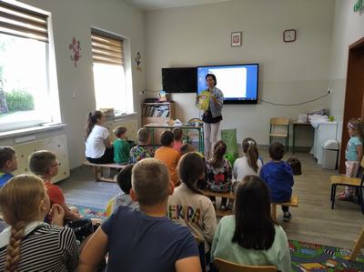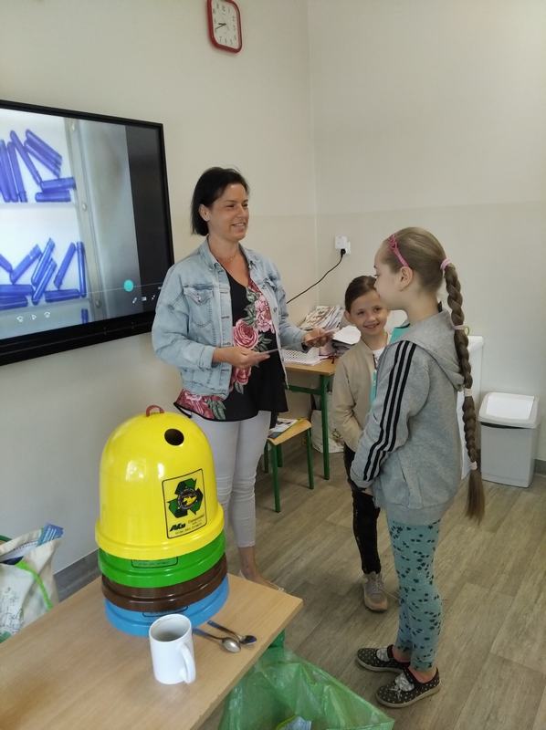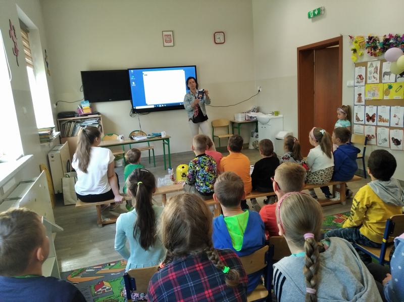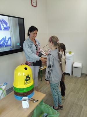 (2022-05-16) W poniedziałek 16 maja dzieci z oddziału przedszkolnego i klasy II i III wzięły udział w ciekawych zajęciach przeprowadzonych przez przedstawicielki MZO na temat segregacji śmieci i recyklingu. Dzieci z wielkim zainteresowaniem wysłuchały prelekcji oraz obejrzały film pt.: "Drugie życie butelki"