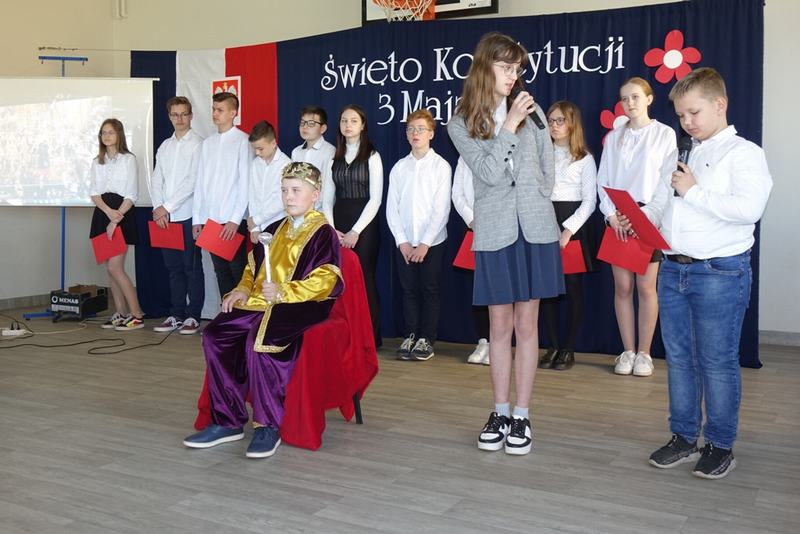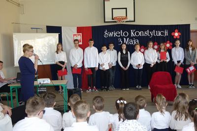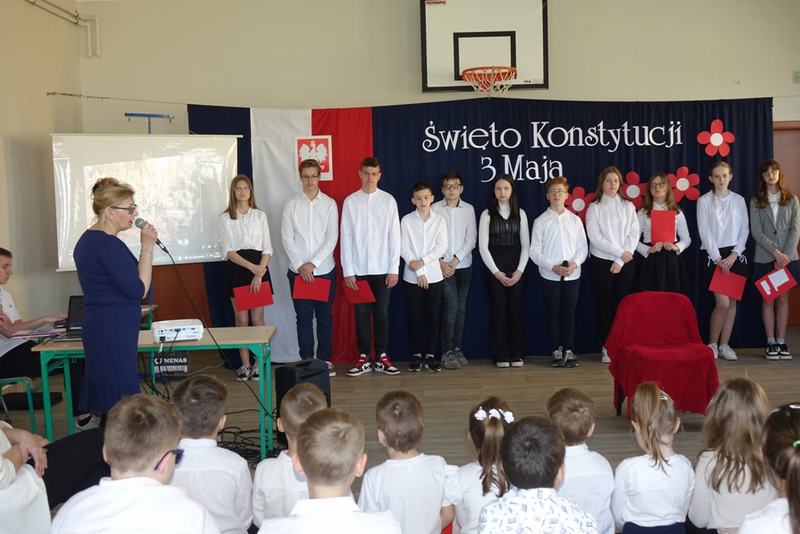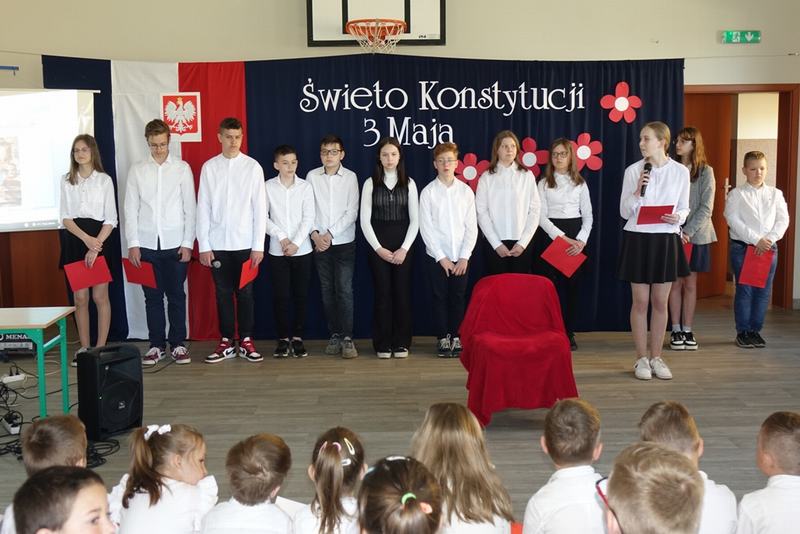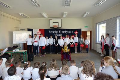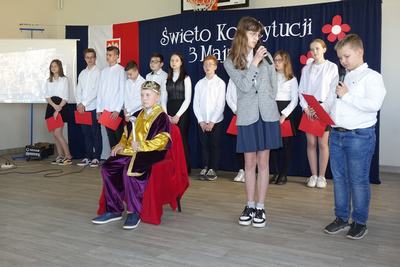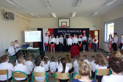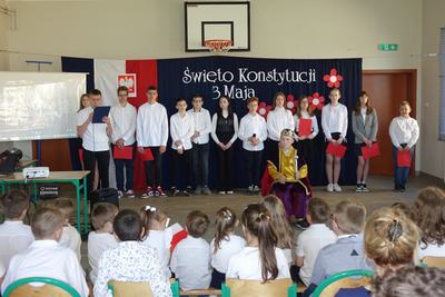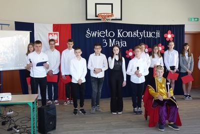 (2022-04-29) W bieżącym roku minęła 231 Rocznica Uchwalenia Konstytucji 3-go maja. By uczcić pamięć, w naszej szkole 29 kwietnia 2022r. odbył się uroczysty apel. Uczniowie klas V-VIII przygotowali krótką część artystyczną.