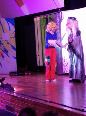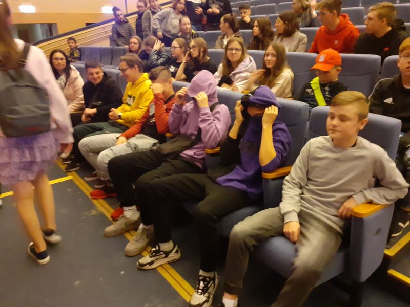 Ona - miłośniczka książek, on uzależniony od komputera, - zapaleniec wirtualnej rzeczywistości, uważający lektury za nudny przeżytek. Ciekawa fabuła, barwna scenografia, kostiumy, piękne maski i fantastyczne efekty świetlne sprawiły, że uczniowie z dużym zaciekawieniem obejrzeli przedstawianie. Do szkoły wrócili zachwyceni i pełni wrażeń.