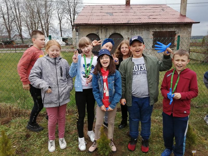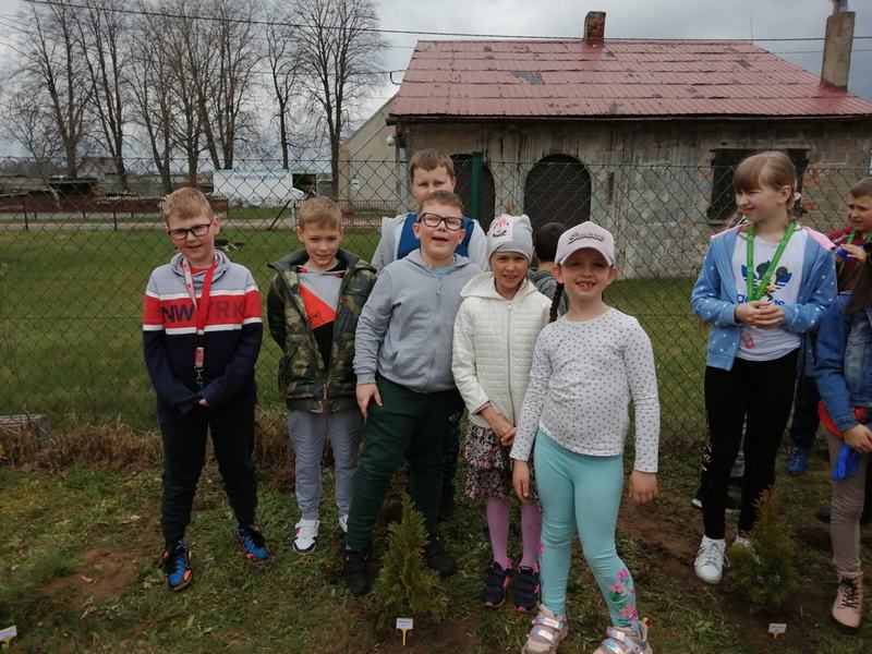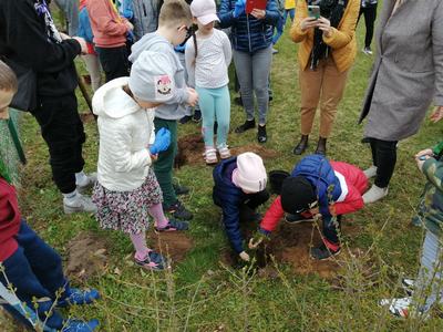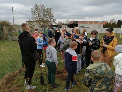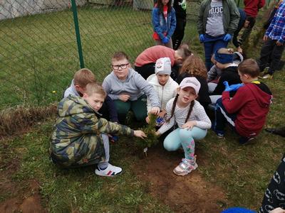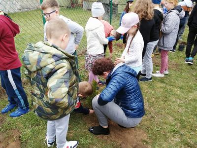 Kopanie dołków w trawie nie było wcale takie proste. Nawet dziewczynki nie dawały za wygraną i dorównywały sile chłopców. Najmłodsi również świetnie sobie radzili. Cieszymy się bardzo, że mogliśmy uczestniczyć w takiej akcji. Będziemy pielęgnować i obserwować swoje posadzone rośliny.