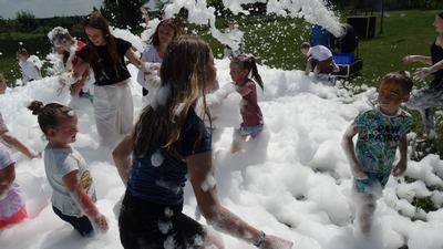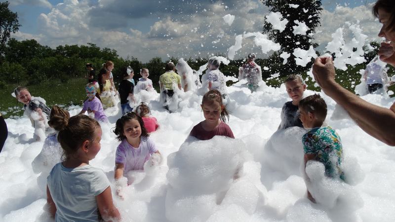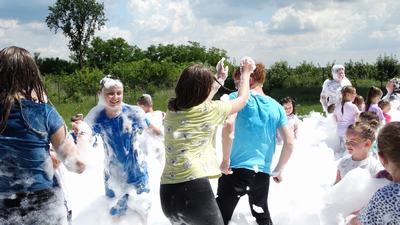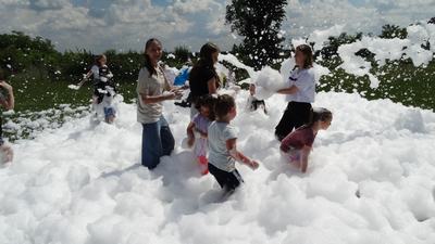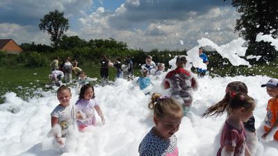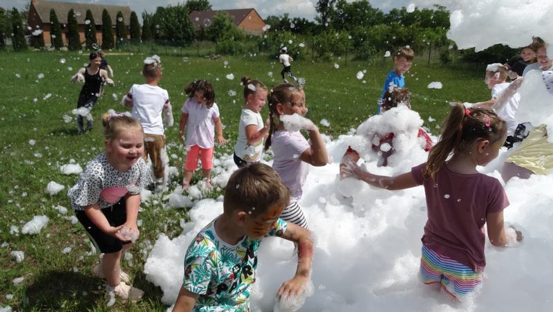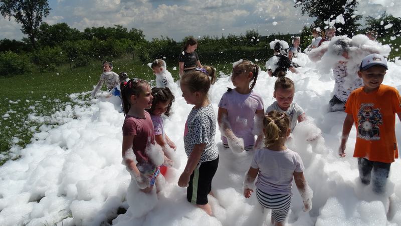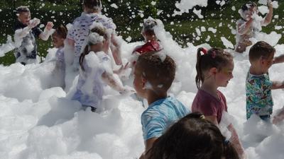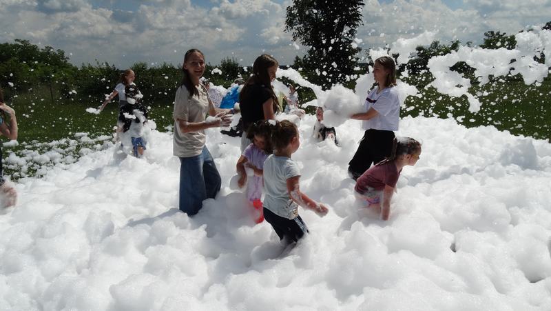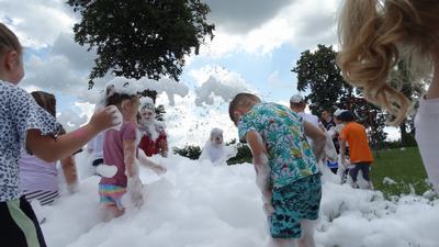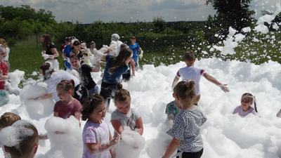 Organizatorzy stanęli na wysokości zadania i zorganizowali wiele ciekawych gier i zabaw: przeciąganie liny, przenoszenie piłeczek w specjalnych okularach, malowanie twarzy, robienie tatuaży, puszczanie gigantycznych baniek mydlanych. Po tak licznych zabawach każdy z ochotą zjadł lody i kiełbaskę upieczoną na ognisku. Tego dnia dzieci otrzymały również to, co uwielbiają najbardziej - prezenty. Rada Rodziców ufundowała zestaw zabawek i przyrządów sportowych, które z pewnością umilą przerwy. Jednak największą atrakcją okazało się – Piana Party, czyli pianowe szaleństwo. Dzieci były zachwycone, mogąc do woli bawić się pianą, lepiąc z niej rozmaite kształty, rzucając kulami czy nurkując w pianowym oceanie. Zabawa była wspaniała, zwłaszcza, że pogoda dopisywała, a wesołe harce przynosiły przyjemną ochłodę. Zabawa, prezenty i niespodzianki – tak słowach można opisać to, co działo się na szkolnym boisku w Dniu Dziecka.