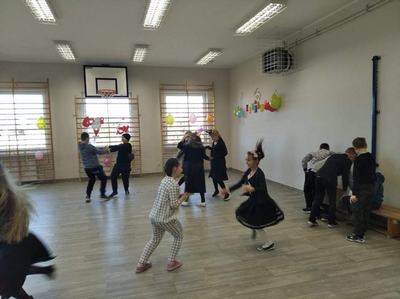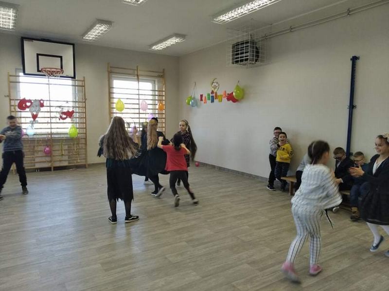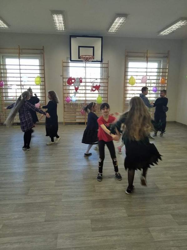 W dniu 14.02.2022 r. w naszej szkole odbył się bal karnawałowy. Sala gimnastyczna zamieniła się w salę balową. Dzieci wystąpiły w ciekawych, kolorowych kostiumach, przebrane za bohaterów znanych bajek i nie tylko. Wszyscy uczniowie bawili się znakomicie przy rytmach różnorodnej muzyki jak przystało na prawdziwy bal. Były pociągi, korowody, kółeczka i tańce w parach. Wszyscy mogli uczestniczyć w zabawach i konkursach. Punktem kulminacyjnym zabawy karnawałowej była ”Poczta walentynkowa” przygotowana przez uczniów klasy II i III.