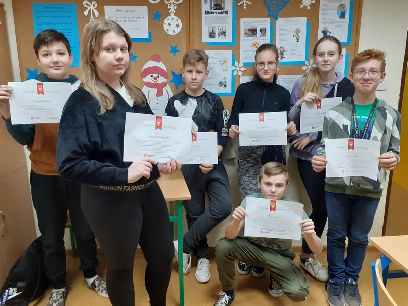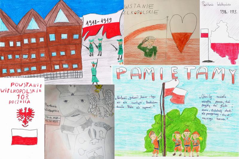 Uczniowie klas V – VIII włączyli się do akcji „Każdy z nas jest powstańcem” i sprawdzili, jaką rolę pełniliby podczas Powstania Wielkopolskiego: sanitariuszki/sanitariusza, łączniczki/łącznika, dowódczyni/dowódcy, żołnierki/żołnierza, edukatorki/edukatora. Po ukończeniu testu uczestnicy otrzymali Certyfikat Powstańca. W szkole został zorganizowany konkurs plastyczny „Moja Mała Ojczyzna – Powstanie Wielkopolskie jako jedyne zwycięskie powstanie w historii Polski”. Uczestnicy konkursu wykonali prace, wykazując się nie tylko kreatywnością i uzdolnieniami plastycznymi, ale przede wszystkim zgłębili wiedzę na temat tego zrywu niepodległościowego. Ponadto przedstawiciele Samorządu Uczniowskiego wraz z opiekunem udali się pod Pomnik Powstańców Wielkopolskich oraz tablice upamiętniające powstańców wielkopolskich w Grabowie nad Prosną, pod którymi złożyli kwiaty i zapalili znicze. Aby upamiętnić wyjątkowy wkład Wielkopolan w odzyskanie niepodległości i przyłączenie po latach zaborów ziem wielkopolskich do wolnej Rzeczypospolitej, cała społeczność szkolna w podniosły sposób odśpiewała „Rotę”. Pieśń poprzedzona została wersją instrumentalną tego utworu zagraną na gitarze przez uczennicę naszej szkoły oraz recytacją wierszy patriotycznych oddających hołd bohaterom tamtych lat. Uroczystości upamiętniające wydarzenia przełomu lat 1918 – 1919 były niecodzienną lekcją historii dla wszystkich uczniów naszej szkoły i stały się uroczystym zwieńczeniem obchodów Pierwszego Narodowego Dnia Zwycięskiego Powstania Wielkopolskiego.