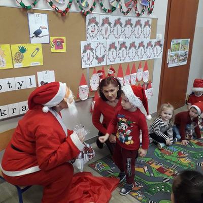 (2021-12-06) Tradycyjnie jak co roku 6 grudnia Przedszkolaków odwiedził bardzo wyczekiwany gość - Mikołaj. Zanim jednak przyszedł, dzieci wysłuchały opowieści o tradycjach Mikołajek jak i o samym Mikołaju, wykonały pracę plastyczną, nauczyły się piosenki, którą zaśpiewały dla Niego. Następnie nastąpił moment wręczania prezentów. Na każdej dziecięcej buzi zagościł w tym dniu uśmiech.