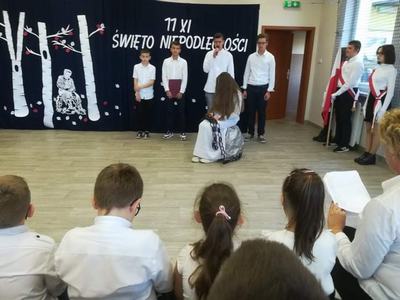 (2021-11-10) Dnia 10 listopada 2021 r. w Szkole Podstawowej w Zamościu odbyła się uroczysta akademia z okazji 103 rocznicy odzyskania przez Polskę niepodległości. Uroczystość przede wszystkim miała przypomnieć ciężkie czasy niewoli, ale także wzbudzić w nas refleksje. Część artystyczna wprowadziła zgromadzonych w atmosferę wydarzeń poprzedzających datę 11 listopada 1918 roku. Uczniowie recytowali wiersze i śpiewali pieśni patriotyczne, które pozwoliły zrozumieć rozterki i uczucia walczących o niepodległość.