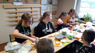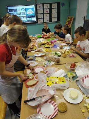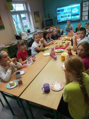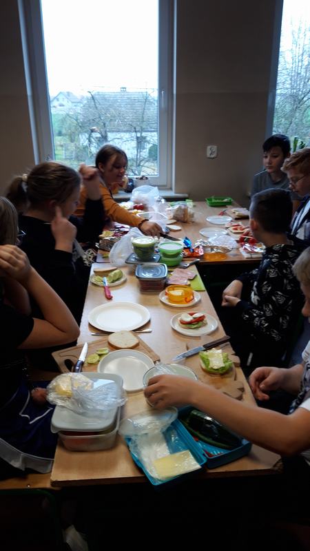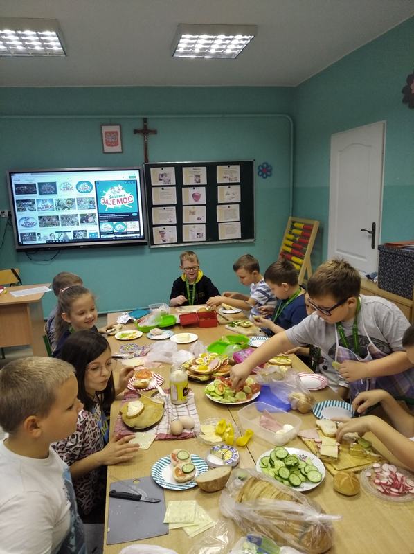 (2021-11-08) Wzorem lat ubiegłych nasza szkoła przyłączyła się do akcji edukacyjnej „Śniadanie daje moc”. 8 listopada 2021r. uczniowie zapoznali się z zasadami zdrowego odżywiania i wspólnie z wychowawcami przygotowali smaczne, zdrowe i kolorowe kanapki. W zorganizowaniu akcji, wsparli nas rodzice uczniów. Dzięki nim na naszych szkolnych stolikach znalazły się pyszne ciasta.
