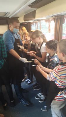 (2021-09-22) Edukacja i zabawa w jednym – czy to możliwe? Tak! Najlepszym dowodem na to były warsztaty, które odbyły się 22 września. Wszystko to za sprawą Czekoladowego Autobusu, który tego dnia zaparkował przy naszej szkole.