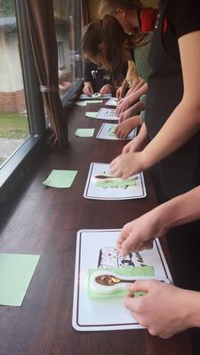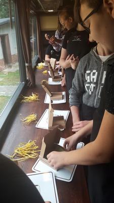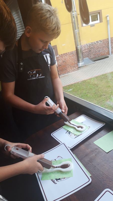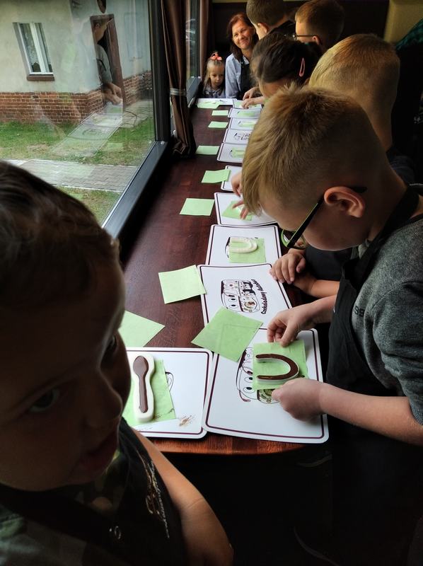 Uczniowie ubrani w fartuszki wyglądali jak prawdziwi mistrzowie cukierni. Aktywnie uczyli się jak odróżniać prawdziwą czekoladę od wyrobów czekoladopodobnych, degustowali różne smaki czekolad i tworzyli własne czekoladki samodzielnie ozdabiając je. W międzyczasie poznawali historię czekolady.