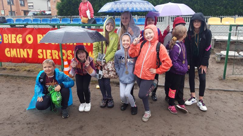 18 września uczniowie naszej szkoły wzięli udział w XII Biegu o Puchar Wójta Gminy Sieroszewice. Serdecznie gratulujemy dzielnym sportowcom, których nie zniechęciły trudne warunki atmosferyczne! Naszą szkołę reprezentowali: Aleksandra Owczarek, Paweł Rojek, Hanna Skrobańska, Antoni Warga, Lena Przybyłek, Zuzanna Jaszczyńska, Wiktoria Jaszczyńska, Anna Maciejewska, Agata Przybyłek, Zofia Warga oraz Katarzyna Skrobańska. Wszyscy osiągnęli wspaniałe wyniki, natomiast na szczególne wyróżnienie zasłużyła Zofia, która zajęła I miejsce w swojej kategorii wiekowej oraz Hania, która zajęła III miejsce w swojej kategorii.
