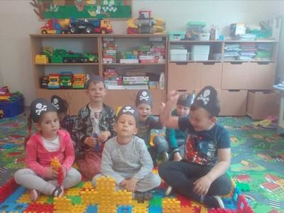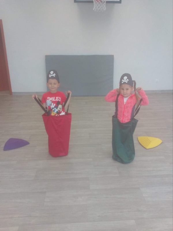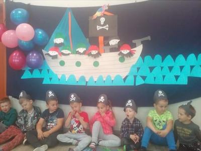 (2021-06-01) Dzień dziecka to bardzo radosny dzień dla wszystkich dzieci, taki też był dla naszych przedszkolaków. Sala przedszkolna w tym dniu zamieniła się w piracką przystań, a dzieci w morskich rozbójników, na których czekały niesamowite przygody i moc wrażeń. Każdy z nich, aby zostać piratem musiał wykazać się dużą sprawnością fizyczną: wdrapywał się po ławeczce gimnastycznej, przeciągał linę, skakał w worku, przechodził po kamieniach.