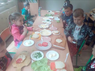 Dzieci dobrze wiedzą jak ważne jest odpowiednie odżywianie, przygotowały więc pyszne kanapki na ,,pirackie śniadanie". Wspólnym zabawom towarzyszyła piosenka,, Piraci".