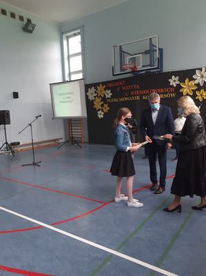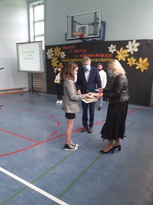W poniedziałek, 25 maja br. uczennice naszej szkoły: Wiktoria Jaszczyńska i Katarzyna Skrobańska zostały zaproszone na uroczyste podsumowanie konkursów organizowanych przez Szkołę Podstawową im. Fryderyka Chopina w Strzyżewie. W konkursie literackim Wiktoria Jaszczyńska otrzymała wyróżnienie za napisanie opowiadania twórczego pt. „Z wizytą w dworku Wiesiołowskich”. Natomiast w konkursie recytatorskim należało zaprezentować utwór nawiązujący do muzyki Fryderyka Chopina. Wiktoria Jaszczyńska i Katarzyna Skrobańska zdobyły II miejsca. Dziewczynki otrzymały dyplomy i nagrody z rąk pani Mirosławy Busza, sekretarza Gminy Sieroszewice. Laureatkom gratulujemy i życzmy dalszych sukcesów.
