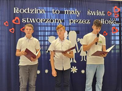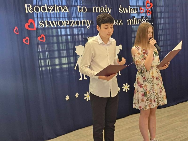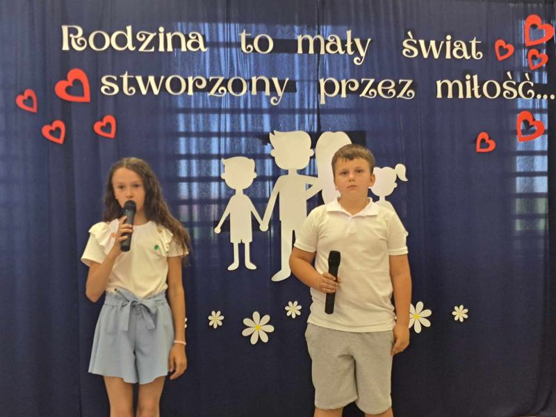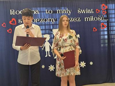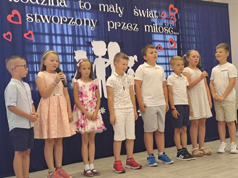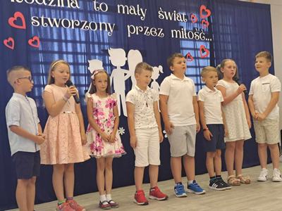 Dzień Mamy i Taty jest jednym z najpiękniejszych świąt w roku, pełnym miłych życzeń i kwiatów, będących wyrazem miłości i szacunku dla rodziców. My także postanowiliśmy w szczególny sposób uczcić to święto, dlatego też 28 maja w naszej szkole odbyła się uroczystość z tej okazji. W tym szczególnym dniu uczniowie i dzieci z oddziału przedszkolnego poprzez przepiękne wiersze i pełne uczuć piosenki wyraziły swoim rodzicom jak bardzo ich kochają i jak ważną rolę odgrywają w ich życiu. Podziękowały za miłość i serce, codzienny trud i cierpliwość. Z ogromnym zaangażowaniem przygotowywały się do swoich ról wiedząc, że przedstawienie to dedykowane jest ukochanym rodzicom. Po występach dzieci wręczyły rodzicom drobne upominki. Całość spotkania zwieńczył słodki poczęstunek.