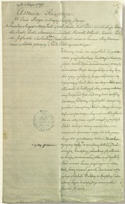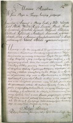 Uchwalona przez króla Stanisława Augusta Poniatowskiego wraz ze stanami skonfederowanemi w liczbie podwóyney naród Polski reprezentującemi [Volumina Legum, t. IX Kraków 1889, s. 220.]. Została zaprojektowana w celu zlikwidowania obecnych od dawna wad opartego na wolnej elekcji i demokracji szlacheckiej systemu politycznego Rzeczypospolitej Obojga Narodów. Konstytucja zmieniła ustrój państwa na monarchię dziedziczną, ograniczyła znacząco demokrację szlachecką, odbierając prawo głosu i decyzji w sprawach państwa szlachcie nieposiadającej ziemi (gołocie), wprowadziła częściowe zrównanie praw osobistych mieszczan i szlachty oraz stawiała chłopów pod ochroną państwa, w ten sposób łagodząc nadużycia pańszczyzny. Konstytucja formalnie zniosła liberum veto.