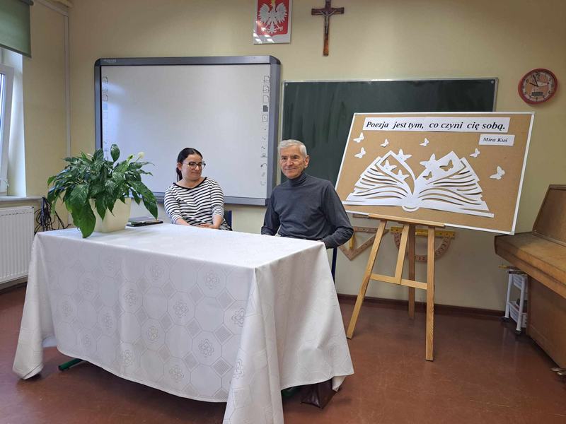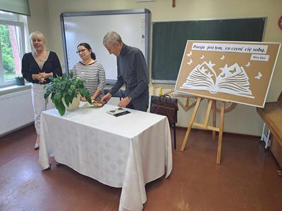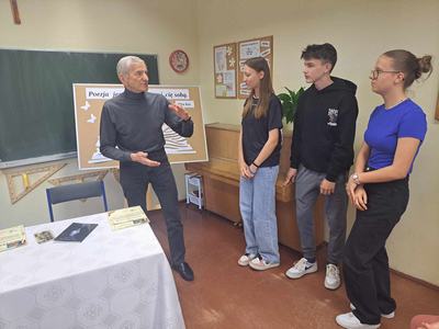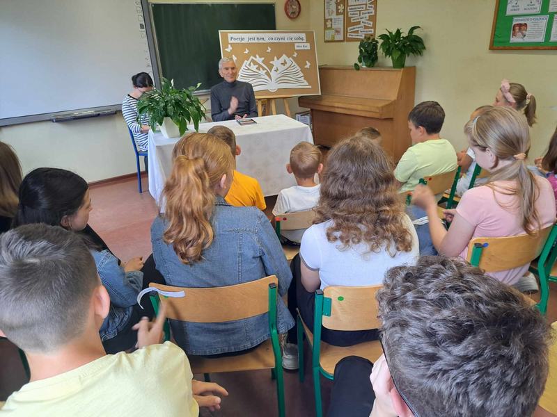 Dowiedzieli się, jak powstają wiersze, dlaczego poezja tak bardzo potrafi wpływać na nasze emocje, czy łatwiej pisać wiersze, bądź opowiadania. Następnie uczniowie mieli możliwość zadawania pytań, na które poeta pochodzący z naszego regionu odpowiadał z wielkim zaangażowaniem.