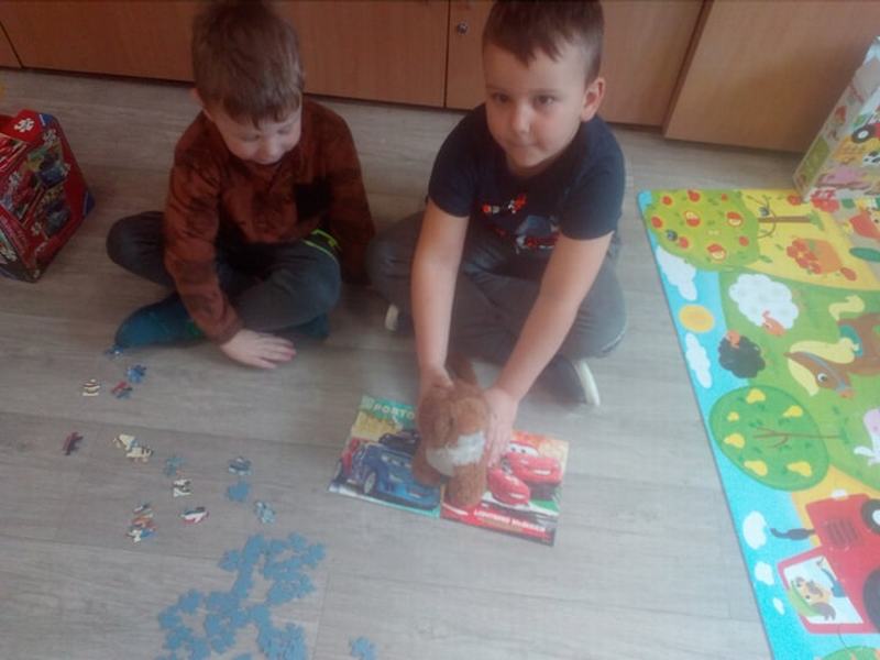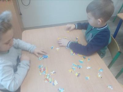 Układanie puzzli to świetna zabawa, która posiada walory edukacyjne. Puzzle uczą wytrwałości w dążeniu do celu, koncentracji na zadaniu, rozwija zdolność analizy i syntezy wzrokowej. Ponadto stymuluje rozwój mózgu, ćwiczy spostrzegawczość, koncentracje i cierpliwość, buduje wiarę we własne możliwości. W piątek 29 stycznia nasze przedszkolaki układały swoje ulubione puzzle w małych zespołach i indywidualnie. Rozwiązywały zagadki i rozwiązywały proste łamigłówki. Dzień minął im w miłej i twórczej atmosferze.