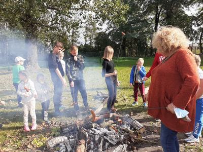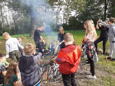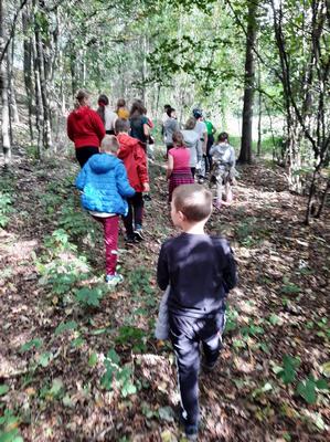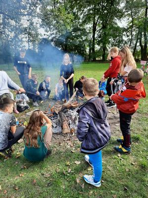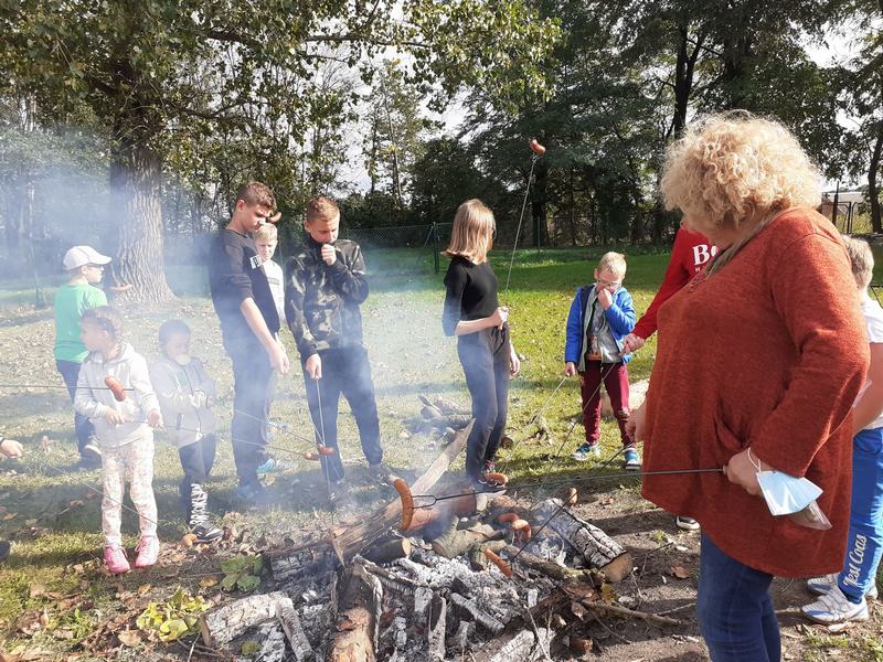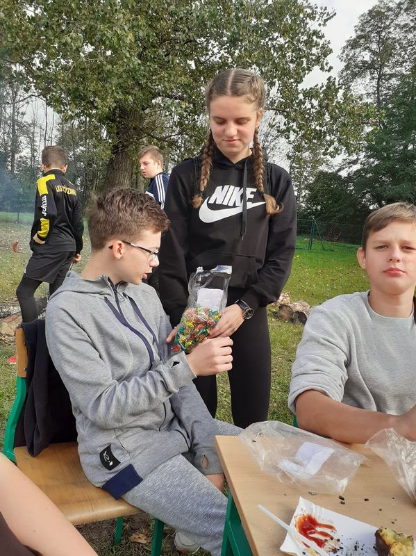 Środa, 7 października upłynęła pod hasłem „ Podchody z okazji Dnia Chłopca”. Wyjście w teren poprzedziło losowanie drużyn – uciekającej i szukającej. Drużyna uciekająca wyruszyła wcześniej, pozostawiając za sobą znaki patrolowe wykonane z patyków, wstążek lub wyrysowane kredą oraz różnorodne zadania do wykonania dla drużyny drugiej – szukającej. Były ćwiczenia zręcznościowe, rebusy i tańce. Grupa szukają doskonale poradziła sobie z wszystkimi zadaniami. Podczas trasy na obie grupy czekały różne niespodzianki, np. poszukiwanie ukrytego skarbu – cukierków czy taniec „Kaczuszek”. Zakończeniem zabawy było ognisko i pieczenie kiełbasek.