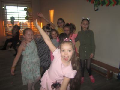 Z racji tego, że impreza odbyła się w ,,Tłusty Czwartek” dzieci otrzymały słodki poczęstunek-pyszne pączki oraz napoje ufundowane przez Radę Rodziców.