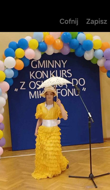 Jury oceniało dopasowanie tekstu do możliwości wykonawcy, opanowanie pamięciowe utworu, kulturę mowy, interpretację głosowa i ogólny wyraz artystyczny. Wszystkie reprezentantki naszej szkoły brawurowo wykonały piosenki autorstwa Agnieszki Osieckiej: Wiktoria Rojek – „Ludzkie gadanie”, Zuzanna Jaszczyńska – „Kołysankę dla okruszka”, Hanna Skrobańska – „Od nocy do nocy” i Wiktoria Jaszczyńska – „Damą być”. To wynik nie tylko talentu, ale i wielkiej pracowitości. Jury szczególnie wysoko oceniło występ Hanny Skrobańskiej, która zdobyła III miejsce w kategorii klas IV – V i Wiktorii Jaszczyńskiej, której przyznano wyróżnienie w kategorii klas VI - VII. Naszym laureatkom należą się wielkie gratulacje, a wszystkim uczestniczkom życzenia sukcesów w konkursach wokalnych.