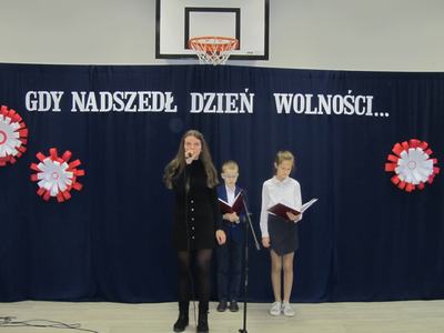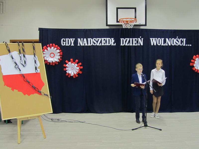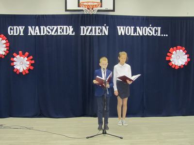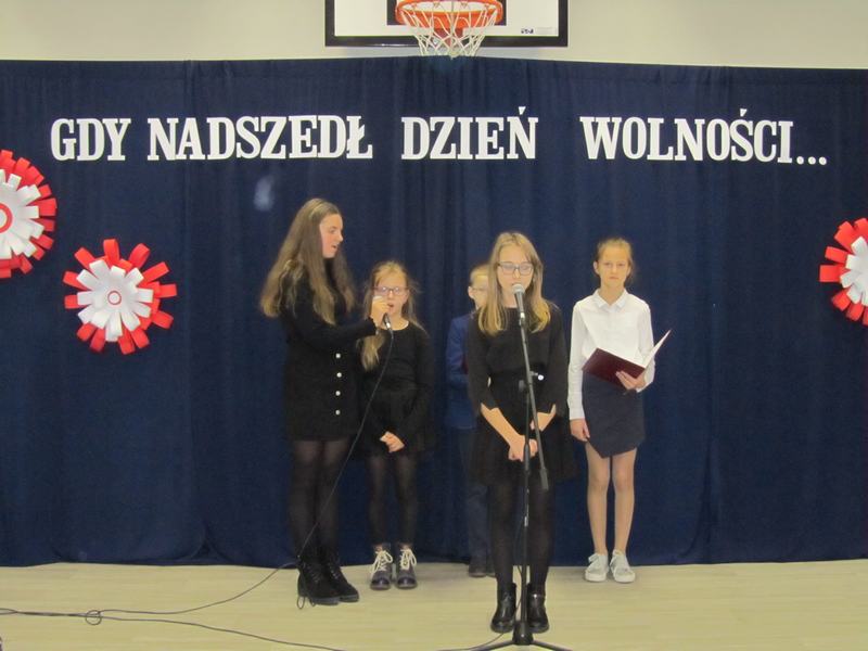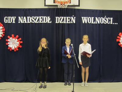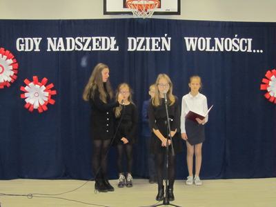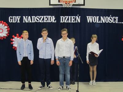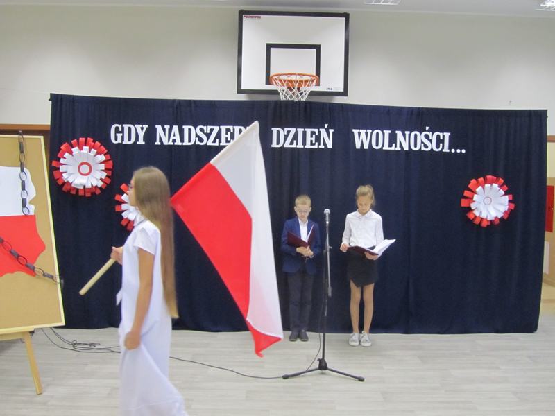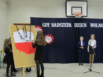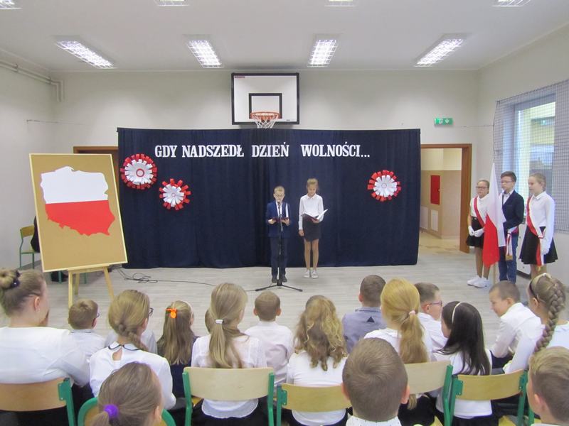 (2019-11-08) Dnia 8 listopada 2019 r. w Szkole Podstawowej w Zamościu odbył się uroczysty apel z okazji Narodowego Święta Niepodległości. Część artystyczna wprowadziła zgromadzonych w atmosferę wydarzeń poprzedzających datę 11 listopada 1918 roku. W skrócie zobrazowano sytuację polityczną kraju, jaka miała miejsce przed odzyskaniem przez Polskę niepodległości. Jednak największy nacisk położono na ukazanie ducha narodu polskiego, który w czasie 123 lat niewoli, stale wychodził z inicjatywą walki za ojczyznę. Uczniowie recytowali wiersze i śpiewali pieśni patriotyczne, które pozwoliły zrozumieć rozterki i uczucia walczących o niepodległość.