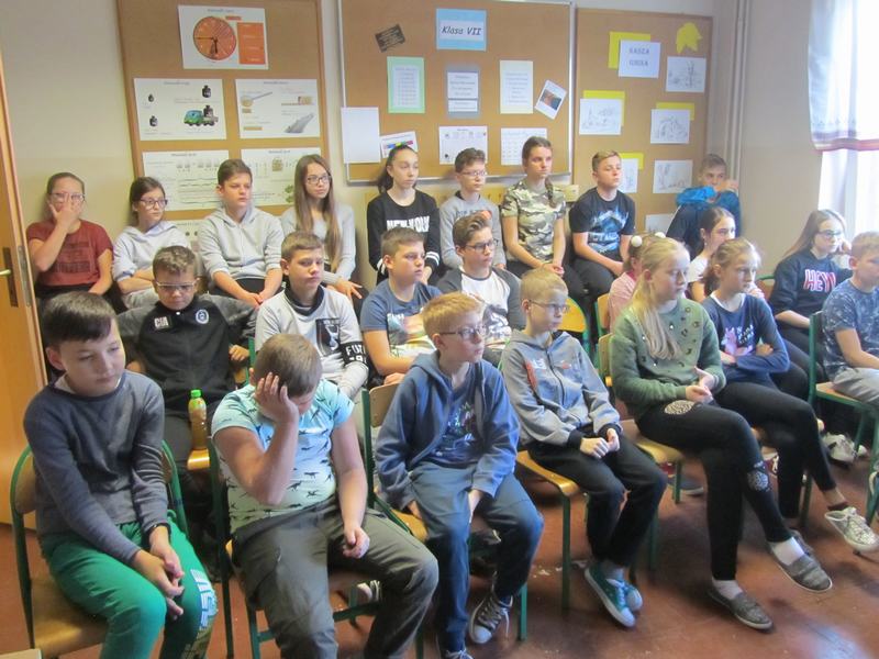 7 listopada 2019r. uczniowie i grupa przedszkolna wzięły udział w spotkaniu z policjantami Komendy Powiatowej Policji w Sieroszewicach. Spotkanie odbyło się w dwóch grupach- uczniowie klas IV-VIII i oddział przedszkolny wraz z uczniami klas I,III. W grupie starszej uczniowie zostali zapoznani z tematem dopalaczy i uzależnień , ich następstw i skutków.