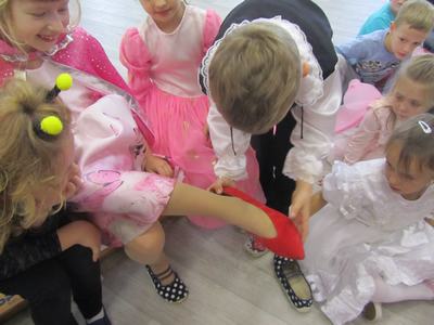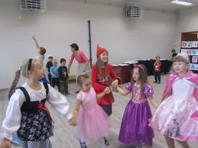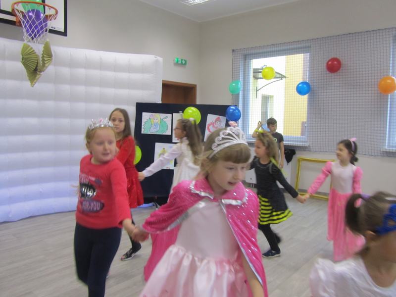 Wzięły udział w bajkowym spotkaniu w czasie którego opowiadały o swoich ulubionych bajkach. Później były zabawy wymagające wykazania się znajomością treści bajek: dzieci rozwiązywały zagadki, rozpoznawały postacie bajkowe na podstawie charakterystycznych rekwizytów i obrazków. Wszyscy uczestnicy otrzymali pamiątkowe medale. W dalszej części spotkania dzieci bawiły się świetnie przy muzyce bajkowej na „ Balu u Kopciuszka” . BYŁO SUPER !