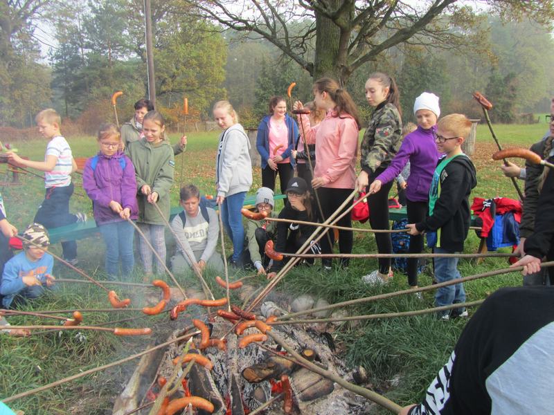 Tam pan Bartosz Wójkiewicz zaprezentował tropy jakie pozostawiają leśne zwierzęta i pokazał jak je odróżniać. Aby odnaleźć ostatnie stanowisko, uczestnicy wycieczki musieli określić skąd dochodzi dźwięk rogu myśliwskiego. Od pana Damiana Szmaja mogliśmy dowiedzieć się o sygnałach myśliwskich i roli sygnalisty podczas polowania. Wycieczka po pięknych lasach zakończyła się przy wspólnym ognisku i słodyczach ufundowanych przez Koło Łowieckie nr 4 „Wielowieś” oraz podsumowaniem zdobytej wiedzy. Wyjazd był bardzo udany, pełen wrażeń i na długo pozostanie w naszej pamięci.