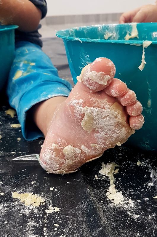 Nabywały w ten sposób wiedzę na temat związków przyczynowo -skutkowych. Poznawały sposoby przemiany jednych rzeczy w drugie i jednocześnie trenowały kompetencję elastyczności i przystosowywania się do zmian.. Każde dziecko miało za to rzadką okazję, aby wszystko obejrzeć, użyć wszystkiego w zupełnie dowolny sposób, wytarzać się w tym i zostać najbrudniejszą i najszczęśliwszą istotką pod słońcem. Na salę przygotowaną do takiej zabawy dzieci wchodziły boso. Przebywanie bez butów i skarpetek miało, umożliwić pełniejsze odczuwanie i działanie relaksacyjne, bo to na stopach znajduje się mnóstwo receptorów, które poprzez ucisk oddziałują na różne rejony naszego ciała. Najważniejszym podsumowaniem działań Sensoplastycznych, jest fakt znany od lat: „Brudne dziecko, to szczęśliwe dziecko”