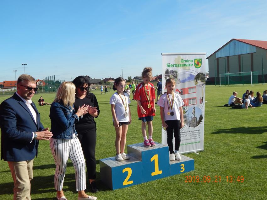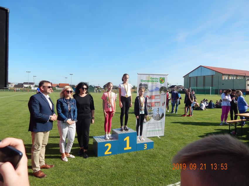 (2019-09-21) 21 września uczniowie z naszej szkoły: Lena Szmaj, Lena Przybyłek, Aleksandra Owczarek, Hanna Skrobańska, Antoni Warga, Wiktoria Jaszczyńska, Oswald Walczak, Zofia Warga, Agata Przybyłek, Katarzyna Skrobańska, Paulina Nowak, Kacper Skrzypek, Szymon Maciejewski, Natalia Zatylna, Marika Pilarczyk pojechali do Sieroszewic aby uczestniczyć w corocznym Biegu o Puchar Wójta Gminy Sieroszewice. Nasi zawodnicy dzielnie walczyli na bieżni o jak najlepsze miejsca. Zofia Warga zdobyła I miejsce w swojej kategorii wiekowej, Katarzyna Skrobańska II, Paulina Nowak, Wiktoria Jaszczyńska i Marika Pilarczyk III. Wszystkim uczestnikom bez względu na osiągnięty wynik dopisywał dobry humor.