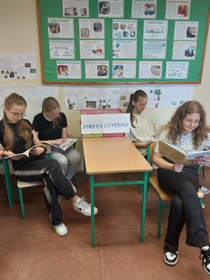 Dużym powodzeniem cieszyły się specjalne strefy czytania, gdzie można było sięgnąć po najnowsze książki z biblioteki szkolnej.