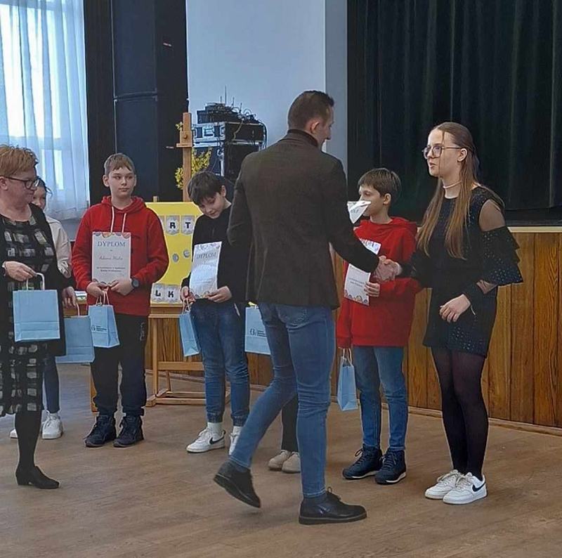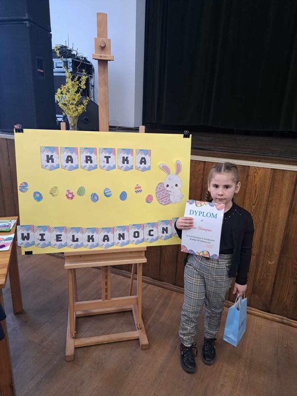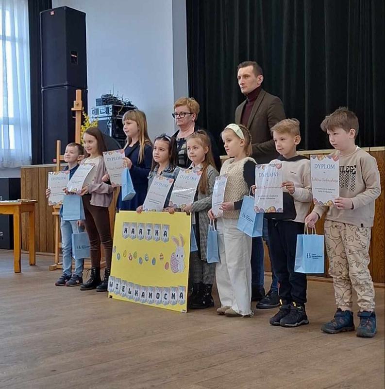 (2024-03-19) We wtorek 19 marca odbyło się podsumowanie konkursu plastycznego pt. ,,Kartka wielkanocna”, zorganizowanego przez Gminną Bibliotekę Publiczną w Sieroszewicach. Na konkurs wpłynęły 204 prace, a nagrodzonych zostało 44 autorów najładniejszych kartek. Nagrody przyznawane były w trzech kategoriach wiekowych: przedszkola i zerówki, klasy I-III i IV-VIII. Laureaci naszej szkoły to: Maja Stempin i Michalina Stach z oddziału przedszkolnego, Wiktor Lewandowski i Wiktor Sadowski z klasy I oraz Wiktoria Jaszczyńska z klasy VII. Gratulujemy wyróżnionym dzieciom.